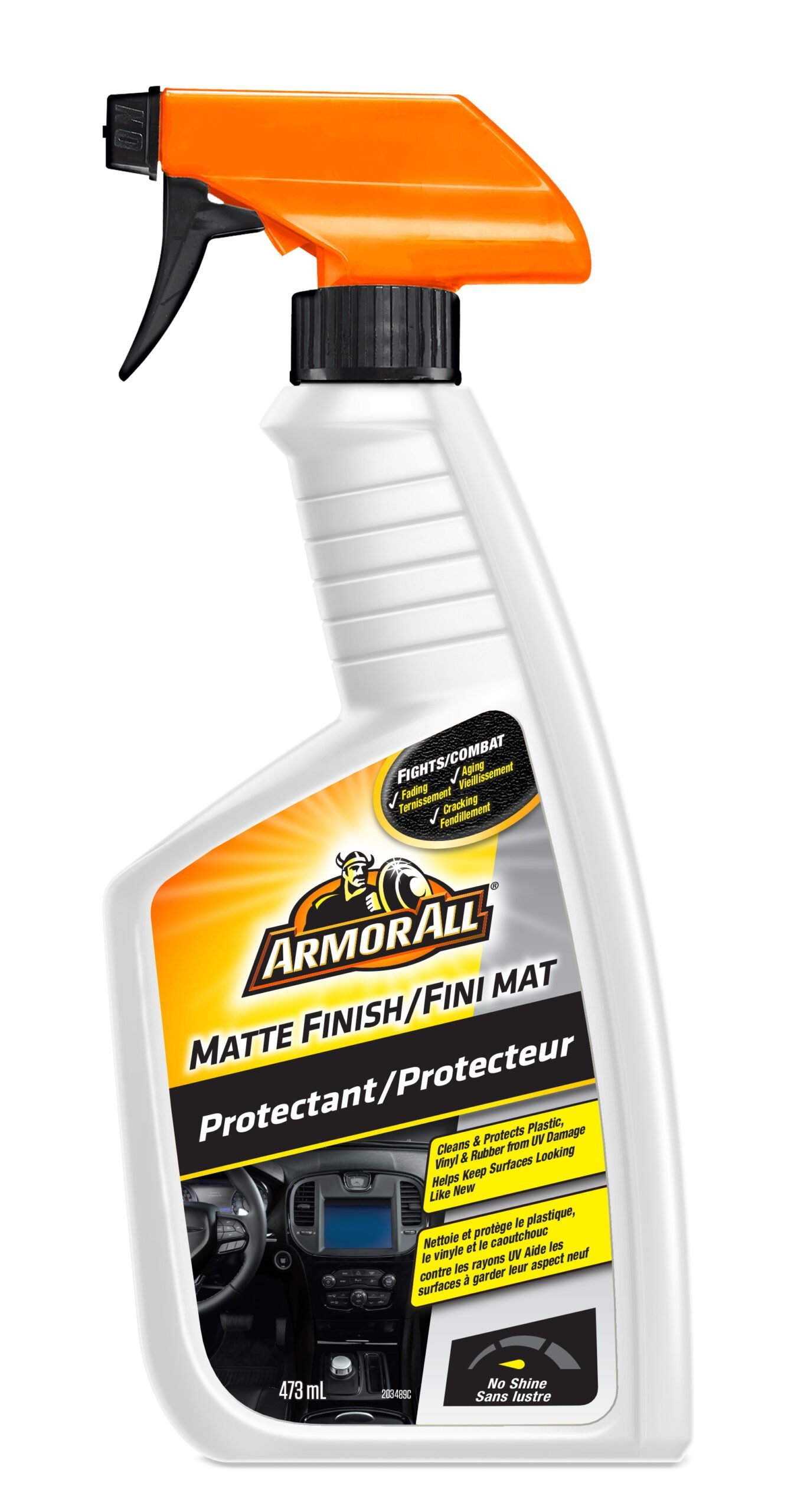 Surfaces of your vehicle take a beating from harmful elements like UV. As a leader in car care, we developed breakthrough technology — Matte Finish Protectant. Scientifically engineered, it reveals the natural appearance of vehicle surfaces including those not traditionally treated with a Protectant. Our innovative silicone-free formula delivers Armor All® – protection without streaks or greasy residue.