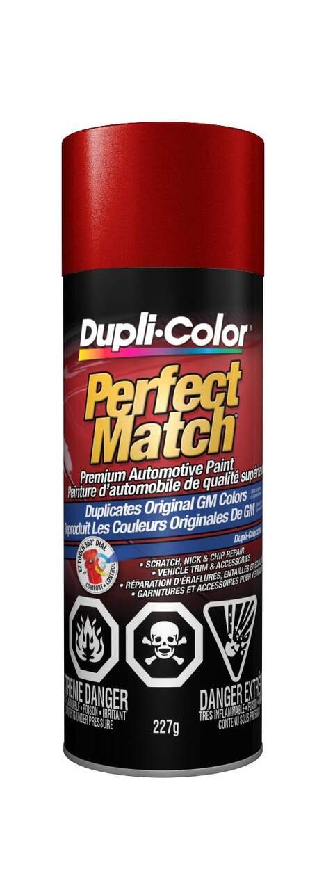 Find your match with Dupli-Color® Perfect Match® Premium Automotive Paint, Dark Cherry Metallic. This easy-to-use, high-quality, fast-drying, acrylic lacquer aerosol paint is specially formulated to match the exact colour of your vehicle’s original factory-applied coating. Ideal for use on all OEM paint surfaces, Perfect Match is available in a complete line of exact-match colours for current and late model import and domestic vehicles. This Dupli-Color® paint is handy for small-scale vehicle touch-ups and for painting vehicle accessories.Features Premium automotive paintFeatures an EZ Touch 360° nozzleIdeal for large touch up jobsDry to touch in 30 minutesAvailable in OEM exact-match colorsColour: Dark Cherry Metallic (94WA9088)Size: 227 gSpecifications Part Number CBGM05097 Advanced Features Vendor Make Colour Match Application Method Aerosol Base Type Not Applicable Colour Red Compatible Surfaces Metal, Fiberglass, Aluminum, Plastic Dry Time To Recoat 10 h Dry Time To Touch 30 min Manufacturer Part Number CBGM05097 Maximum Temperature (°C) 35 °CView more specifications Resources Our return policy View full return policy Return Policy WarrantyThis product carries a 1 year exchange warranty redeemable at any Battery World Store. User Manual View user manuals and additional product information Download