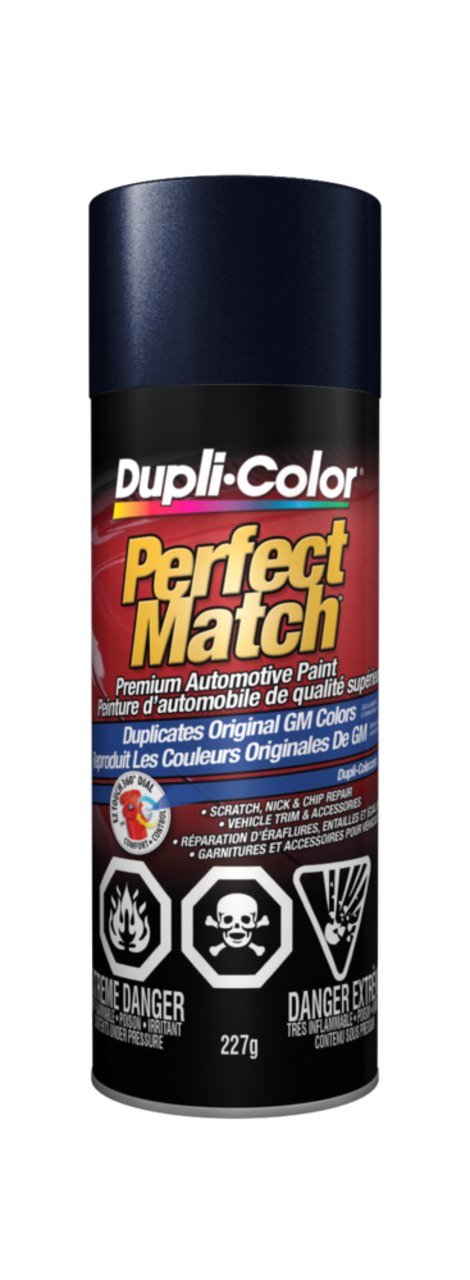Find your match with Dupli-Color® Perfect Match® Premium Automotive Paint, Dark Ming Blue. This easy-to-use, high-quality, fast-drying, acrylic lacquer aerosol paint is specially formulated to match the exact colour of your vehicle’s original factory-applied coating. Ideal for use on all OEM paint surfaces, Perfect Match is available in a complete line of exact-match colours for current and late model import and domestic vehicles. This Dupli-Color® paint is handy for small-scale vehicle touch-ups and for painting vehicle accessories.Features Premium automotive paintFeatures an EZ Touch 360° nozzleIdeal for large touch up jobsDry to touch in 30 minutesAvailable in OEM exact-match colorsColour: Dark Ming Blue (25WA722J)Size: 227 gSpecifications Part Number CBGM05007 Advanced Features Vendor Make Colour Match Application Method Aerosol Base Type Not Applicable Colour Blue Compatible Surfaces Metal, Fiberglass, Aluminum, Plastic Dry Time To Recoat 10 h Dry Time To Touch 30 min Manufacturer Part Number CBGM05007 Maximum Temperature (°C) 35 °CView more specifications Resources Our return policy View full return policy Return Policy WarrantyThis product carries a 1 year exchange warranty redeemable at any Battery World Store.