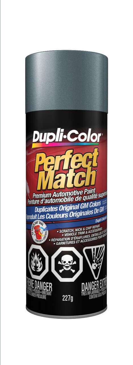 Find your match with Dupli-Color® Perfect Match® Premium Automotive Paint, Grey Metallic. This easy-to-use, high-quality, fast-drying, acrylic lacquer aerosol paint is specially formulated to match the exact colour of your vehicle’s original factory-applied coating. Ideal for use on all OEM paint surfaces, Perfect Match is available in a complete line of exact-match colours for current and late model import and domestic vehicles. This Dupli-Color® paint is handy for small-scale vehicle touch-ups and for painting vehicle accessories.Features Premium automotive paintFeatures an EZ Touch 360° nozzleIdeal for large touch up jobsDry to touch in 30 minutesAvailable in OEM exact-match colorsColour: Grey Metallic (90WA8798)Size: 227 gSpecifications Part Number CBGM05347 Advanced Features Vendor Make Colour Match Application Method Aerosol Base Type Not Applicable Colour Grey Compatible Surfaces Metal, Fiberglass, Aluminum, Plastic Dry Time To Recoat 10 h Dry Time To Touch 30 min Manufacturer Part Number CBGM05347 Maximum Temperature (°C) 35 °CView more specifications Resources Our return policy View full return policy Return Policy WarrantyThis product carries a 1 year exchange warranty redeemable at any Battery World Store.