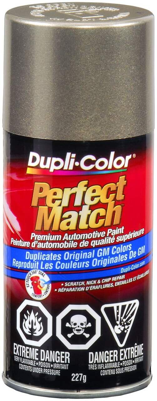 Find your match with Dupli-Color® Perfect Match® Premium Automotive Paint, Light Bronze Mist. This easy-to-use, high-quality, fast-drying, acrylic lacquer aerosol paint is specially formulated to match the exact colour of your vehicle’s original factory-applied coating. Ideal for use on all OEM paint surfaces, Perfect Match is available in a complete line of exact-match colours for current and late model import and domestic vehicles. This Dupli-Color® paint is handy for small-scale vehicle touch-ups and for painting vehicle accessories.Features Premium automotive paintFeatures an EZ Touch 360° nozzleDry to touch in 30 minutesAvailable in OEM exact-match coloursColour: Light Bronze Mist (54 WA534F)Size: 8 oz (227 g)Specifications Part Number CBGM0318 Advanced Features Vendor Make Colour Match Application Method Aerosol Base Type Not Applicable Colour Tan Compatible Surfaces Metal, Fiberglass, Aluminum, Plastic Dry Time To Recoat 10 h Dry Time To Touch 30 min Manufacturer Part Number CBGM0318 Maximum Temperature (°C) 35 °CView more specifications Resources Our return policy View full return policy Return Policy WarrantyThis product carries a 1 year exchange warranty redeemable at any Battery World Store. User Manual View user manuals and additional product information Download