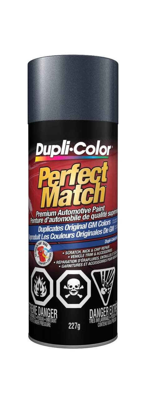 Find your match with Dupli-Color® Perfect Match® Premium Automotive Paint, Medium Grey Metallic. This easy-to-use, high-quality, fast-drying, acrylic lacquer aerosol paint is specially formulated to match the exact colour of your vehicle’s original factory-applied coating. Ideal for use on all OEM paint surfaces, Perfect Match is available in a complete line of exact-match colours for current and late model import and domestic vehicles. This Dupli-Color® paint is handy for small-scale vehicle touch-ups and for painting vehicle accessories.Features Premium automotive paintFeatures an EZ Touch 360° nozzleIdeal for large touch up jobsDry to touch in 30 minutesAvailable in OEM exact-match colorsColour: Medium Grey Metallic (15WA8573)Size: 227 gSpecifications Part Number CBGM03477 Advanced Features Vendor Make Colour Match Application Method Aerosol Base Type Not Applicable Colour Grey Compatible Surfaces Metal, Fiberglass, Aluminum, Plastic Dry Time To Recoat 10 h Dry Time To Touch 30 min Manufacturer Part Number CBGM03477 Maximum Temperature (°C) 35 °CView more specifications Resources Our return policy View full return policy Return Policy WarrantyThis product carries a 1 year exchange warranty redeemable at any Battery World Store.