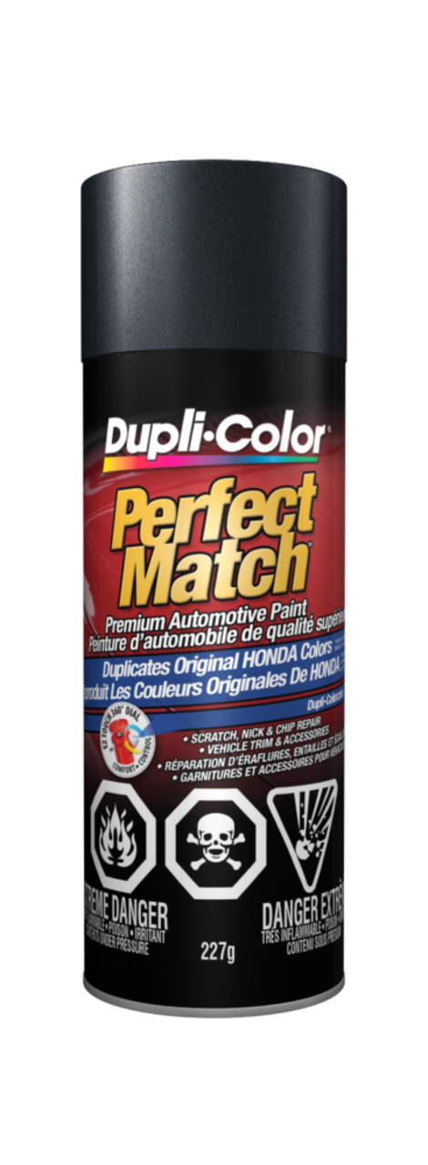 Find your match with Dupli-Color® Perfect Match® Premium Automotive Paint, Polished Metal Metallic. This easy-to-use, high-quality, fast-drying, acrylic lacquer aerosol paint is specially formulated to match the exact colour of your vehicle’s original factory-applied coating. Ideal for use on all OEM paint surfaces, Perfect Match is available in a complete line of exact-match colours for current and late model import and domestic vehicles. This Dupli-Color® paint is handy for small-scale vehicle touch-ups and for painting vehicle accessories.Features Premium automotive paintFeatures an EZ Touch 360° nozzleIdeal for large touch up jobsDry to touch in 30 minutesAvailable in OEM exact-match colorsColour: Polished Metal Metallic (NH737M)Size: 227 gSpecifications Part Number CBHA09907 Advanced Features Vendor Make Colour Match Application Method Aerosol Base Type Not Applicable Colour Grey Compatible Surfaces Metal, Fiberglass, Aluminum, Plastic Dry Time To Recoat 10 h Dry Time To Touch 30 min Manufacturer Part Number CBHA09907 Maximum Temperature (°C) 35 °CView more specifications Resources Our return policy View full return policy Return Policy WarrantyThis product carries a 1 year exchange warranty redeemable at any Battery World Store.