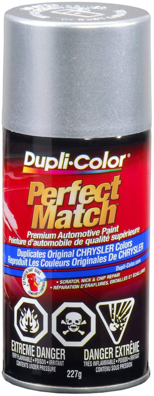 Find your match with Dupli-Color® Perfect Match® Premium Automotive Paint, Radiant Silver Metallic. This easy-to-use, high-quality, fast-drying, acrylic lacquer aerosol paint is specially formulated to match the exact colour of your vehicle’s original factory-applied coating. Ideal for use on all OEM paint surfaces, Perfect Match is available in a complete line of exact-match colours for current and late model import and domestic vehicles. This Dupli-Color® paint is handy for small-scale vehicle touch-ups and for painting vehicle accessories.Features Premium automotive paintFeatures an EZ Touch 360° nozzleDry to touch in 30 minutesAvailable in OEM exact-match coloursColour: Radiant Silver Metallic (CA1,PA1)Size: 8 oz (227 g)Specifications Part Number CBCC0338 Advanced Features Vendor Make Colour Match Application Method Aerosol Base Type Not Applicable Colour Grey Compatible Surfaces Metal, Fiberglass, Aluminum, Plastic Dry Time To Recoat 10 h Dry Time To Touch 30 min Manufacturer Part Number CBCC0338 Maximum Temperature (°C) 35 °CView more specifications Resources Our return policy View full return policy Return Policy WarrantyThis product carries a 1 year exchange warranty redeemable at any Battery World Store. User Manual View user manuals and additional product information Download