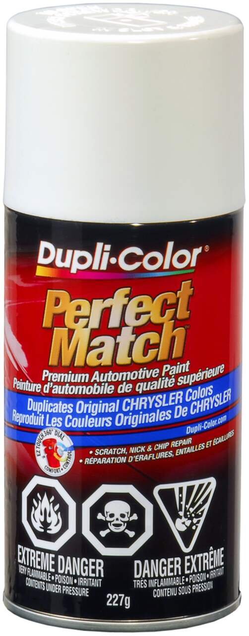 Find your match with Dupli-Color® Perfect Match® Premium Automotive Paint, Stone White. This easy-to-use, high-quality, fast-drying, acrylic lacquer aerosol paint is specially formulated to match the exact colour of your vehicle’s original factory-applied coating. Ideal for use on all OEM paint surfaces, Perfect Match is available in a complete line of exact-match colours for current and late model import and domestic vehicles. This Dupli-Color® paint is handy for small-scale vehicle touch-ups and for painting vehicle accessories.Features Premium automotive paintFeatures an EZ Touch 360° nozzleDry to touch in 30 minutesAvailable in OEM exact-match coloursColour: Stone White (PW1)Size: 8 oz (227 g)Specifications Part Number CBCC0407 Advanced Features Vendor Make Colour Match Application Method Aerosol Base Type Not Applicable Colour White Compatible Surfaces Metal, Fiberglass, Aluminum, Plastic Dry Time To Recoat 10 h Dry Time To Touch 30 min Manufacturer Part Number CBCC0407 Maximum Temperature (°C) 35 °CView more specifications Resources Our return policy View full return policy Return Policy WarrantyThis product carries a 1 year exchange warranty redeemable at any Battery World Store. User Manual View user manuals and additional product information Download