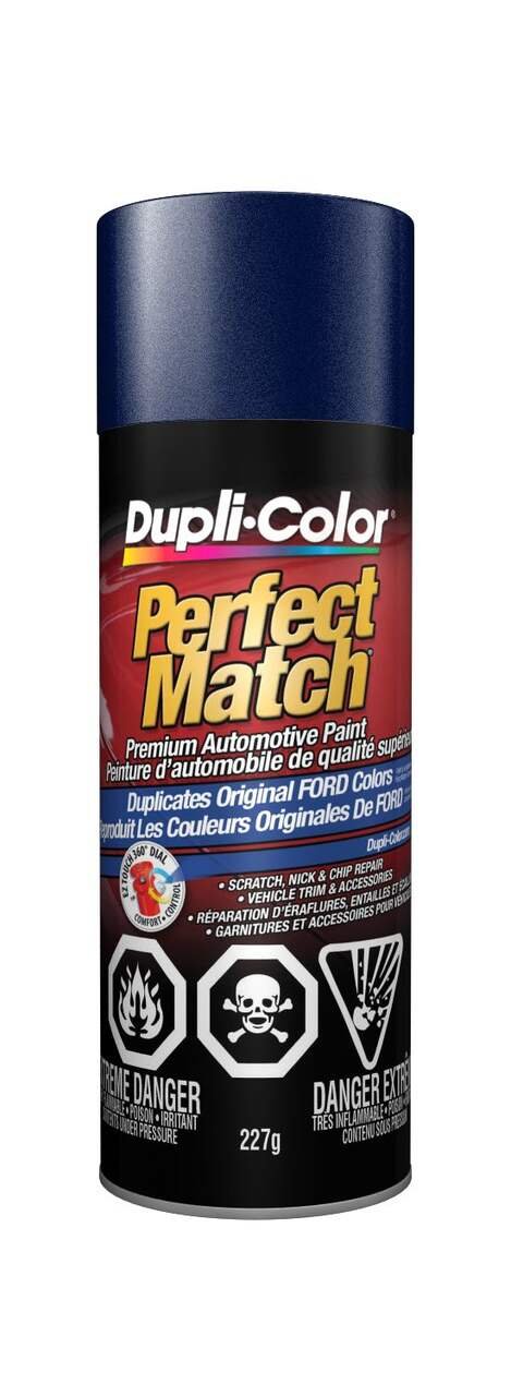 Find your match with Dupli-Color® Perfect Match® Premium Automotive Paint, Twilight Blue Metallic. This easy-to-use, high-quality, fast-drying, acrylic lacquer aerosol paint is specially formulated to match the exact colour of your vehicle’s original factory-applied coating. Ideal for use on all OEM paint surfaces, Perfect Match is available in a complete line of exact-match colours for current and late model import and domestic vehicles. This Dupli-Color® paint is handy for small-scale vehicle touch-ups and for painting vehicle accessories.Features Premium automotive paintFeatures an EZ Touch 360° nozzleDry to touch in 30 minutesAvailable in OEM exact-match coloursColour: Twilight Blue Metallic (7F,MK)Size: 8 oz (227 g)Specifications Part Number CBFM0294 Advanced Features Vendor Make Colour Match Application Method Aerosol Base Type Not Applicable Colour Blue Compatible Surfaces Metal, Fiberglass, Aluminum, Plastic Dry Time To Recoat 10 h Dry Time To Touch 30 min Manufacturer Part Number CBFM0294 Maximum Temperature (°C) 35 °CView more specifications Resources Our return policy View full return policy Return Policy WarrantyThis product carries a 1 year exchange warranty redeemable at any Battery World Store. User Manual View user manuals and additional product information Download
