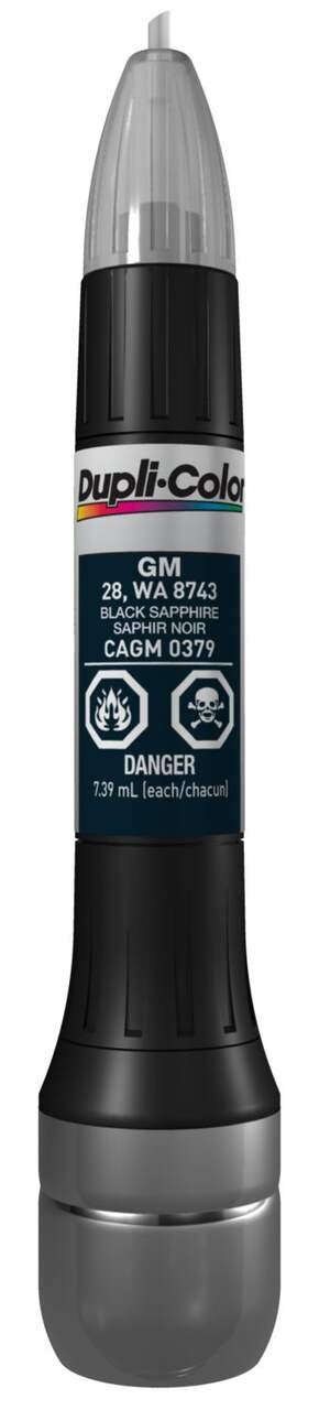 The Dupli-Color Scratch Fix All-in-1 Touch Up Paint in Black Sapphire offers a simple yet effective solution for fixing minor scratches and chips on your vehicle. This convenient touch-up tool features a 3-in-1 design, combining an abrasive prep tip, factory-matched paint, and a clear coat in a single package. Colours are tested and approved by vehicle manufacturers for a perfect match to the original factory finish so you can confidently restore your vehicle’s appearance right from your own garage.Features Unique one-coat prime and paint formulaAbrasive tip removes loose paint and rust prior to paint applicationPen tip for fine scratchesBrush end for larger chipsClear coat to seal, protect and ensure a perfect factory matched finishSize: 7.39 mL (0.2 oz)Colour: Black Sapphire (28 WA8743)For use with GM vehiclesSpecifications Part Number CAGM0379 Advanced Features No Advanced Features Application Method Applicator Pen Base Type Not Applicable Colour Black Compatible Surfaces Metal, Aluminum, Fiberglass, Plastic, Other, Vinyl, Wood, Stainless Steel Dry Time To Recoat 30 h Dry Time To Touch 30 min Manufacturer Part Number CAGM0379 Maximum Temperature (°C) 35 °CView more specifications Resources Our return policy View full return policy Return Policy WarrantyThis product carries a 1 year exchange warranty redeemable at any Battery World Store.