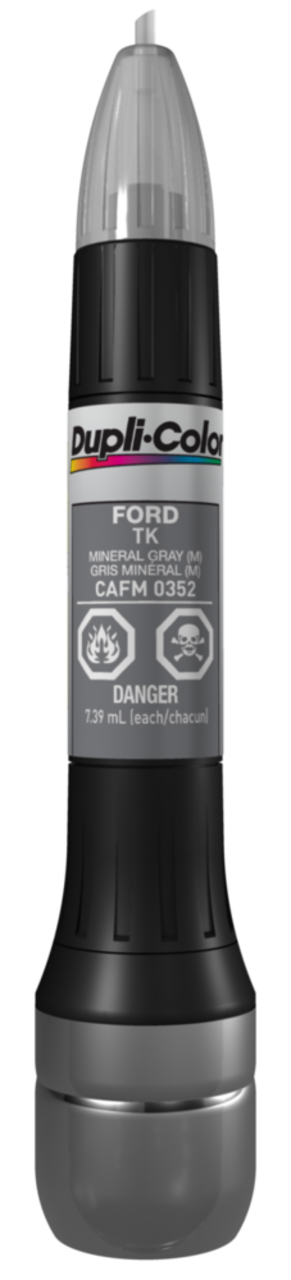 This three-in-one touch-up tool helps make even the biggest scratches disappear. Its tapered tip brush removes rust and oxidation from your vehicle’s Mineral Gray Metallic finish, while the built-in mineral-gray paint pen matches your car’s color exactly. Apply the paint to cover scratches and dings, then seal with the included clear coat for a factory-fresh look. In just one easy step, this all-in-one tool helps restore your vehicle’s original condition.Features The Dupli-Color Scratch Fix All-in-1 touch-up tool features an abrasive prep tip, exact-color match paint, and clear coat giving it a unique 3-in-1 designMatch the exact colour of your vehicle with the paint brush or penFeatures a taper tip brush to remove rust and oxidizationClear coat seals, protects and ensures a professional lookOne Coat Prime and Paint formulaColour: Mineral Grey Metallic (TK)Size: 7.39 mLSpecifications Part Number CAFM0352 Advanced Features No Advanced Features Application Method Applicator Pen Base Type Not Applicable Colour Grey Compatible Surfaces Metal, Aluminum, Fiberglass, Plastic, Other, Vinyl, Wood, Stainless Steel Dry Time To Recoat 30 h Dry Time To Touch 30 min Manufacturer Part Number CAFM0352 Maximum Temperature (°C) 35 °CView more specifications Resources Our return policy View full return policy Return Policy WarrantyThis product carries a 1 year exchange warranty redeemable at any Battery World Store.