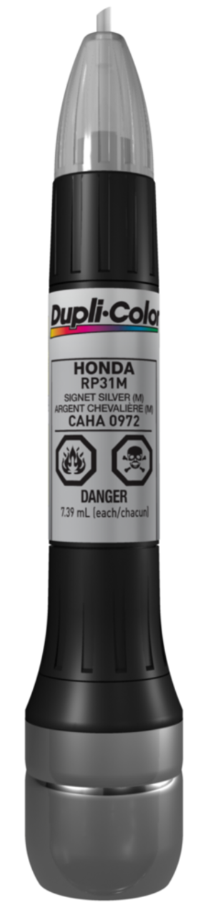 This three-in-one scratch fix tool makes light work of minor paint touch-ups. The tapered prep tip removes rust and oxidation while the exact color-match paint brush and clear coat pen effortlessly fill and seal scratches in a snap. Whether you need to cover up a minor ding or freshen up a faded emblem, this one-coat prime and paint formula in Signet Silver Metallic perfectly matches your vehicle’s color with a professional finish.Features The Dupli-Color Scratch Fix All-in-1 touch-up tool features an abrasive prep tip, exact-color match paint, and clear coat giving it a unique 3-in-1 designMatch the exact colour of your vehicle with the paint brush or penFeatures a taper tip brush to remove rust and oxidizationClear coat seals, protects and ensures a professional lookOne Coat Prime and Paint formulaColour: Signet Silver Metallic (RP31M)Size: 7.39 mLSpecifications Part Number CAHA0972 Advanced Features No Advanced Features Application Method Applicator Pen Base Type Not Applicable Colour Grey Compatible Surfaces Metal, Aluminum, Fiberglass, Plastic, Other, Vinyl, Wood, Stainless Steel Dry Time To Recoat 30 h Dry Time To Touch 30 min Manufacturer Part Number CAHA0972 Maximum Temperature (°C) 35 °CView more specifications Resources Our return policy View full return policy Return Policy WarrantyThis product carries a 1 year exchange warranty redeemable at any Battery World Store.