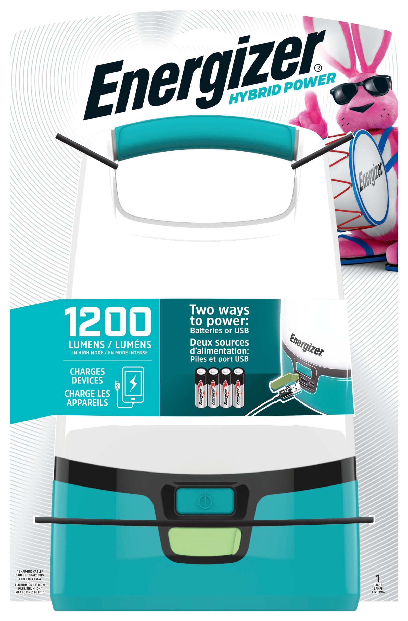 For powerful, bright light perfect for any task, choose the Energizer Vision Hybrid Lantern. Up to 10x brighter than standard LED technology, this LED area light offers 360 degree light ideal for outdoor adventures. This LED light is equipped with a USB port out, so you can charge your devices even in emergency situations. This Energizer light also features Flexible Hybrid Powered technology?simply charge it up to use it as a rechargeable lantern or insert 4 AA batteries to use it as a battery powered lantern. Customize the light output using the dimming feature, or use the night light mode for low diffused, long lasting light. A non-slip grip handle makes this rechargeable light easy to carry, and its sturdy base allows for hands free light. Get long lasting LED light you can depend on with Energizer.