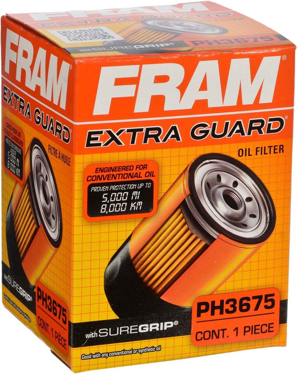 Product DetailsFeatures FRAM Extra Guard Oil Filter is engineered for conventional and synthetic motor oilsCellulose and glass blended media which provides advanced engine protection for your vehicleMeets all manufacturers recommended change intervals, up to 16,000 kmSilicone anti-drainback valve ensures start-up protectionSureGrip filter top allows for easier installation and removal95% filtration efficiencySpecifications Part Number PH3675 Accessories List No Accessories Included Advanced Features Anti Drain Back Valve, Bypass Relief Valve, Non-Slip Grip Filter Media Material Composite Filter Type Conventional Gasket Thickness (cm) 0.48 cm Gasket Type Gasket Inside Thread Size 2.06 cm Manufacturer Part Number PH3675 Micron Rating 95.00 µmView more specifications Resources Our return policy View full return policy Return Policy WarrantyThis product carries a 1 year exchange warranty redeemable at any Battery World Store.