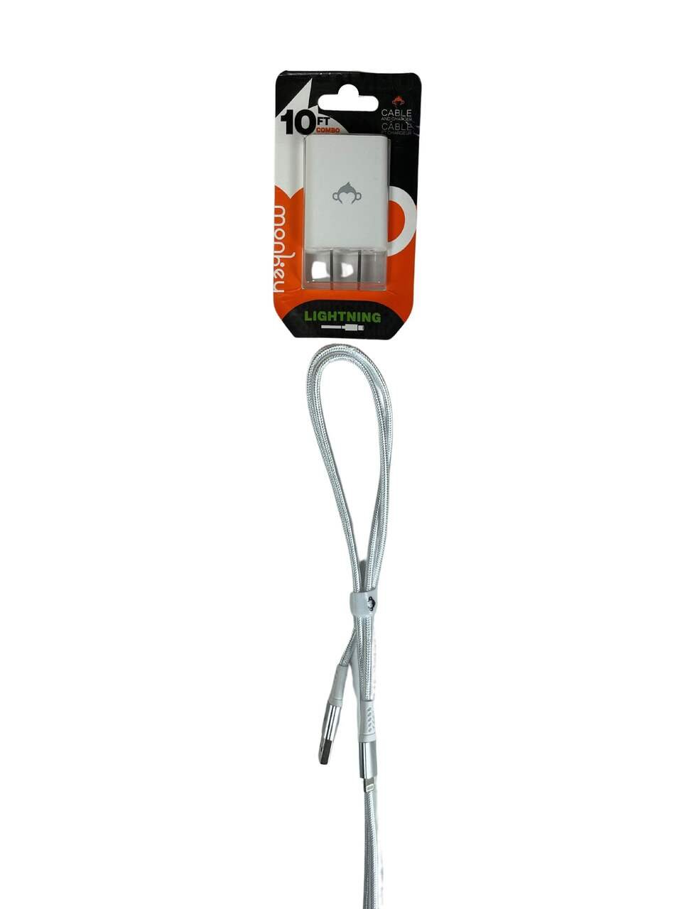 Product DetailsFeatures Charge your device almost anywhere with our long, durable Monkey Lightning CableStylish and modern colourConvenient combo gives you all you needQuick 2A charging power!Length: 10′ (3 m)Specifications Part Number SM6798SI Advanced Features No Advanced Features Capacity (devices) 1 Colour Silver Package Depth (cm) 5.40 cm Package Depth (in) 2.13 in Package Height (cm) 31.10 cm Package Height (in) 12.24 in Package Weight (kg) 0.15 kg Package Weight (lb) 0.33 lbView more specifications Resources Our return policy View full return policy Return Policy WarrantyThis product carries a 1 year exchange warranty redeemable at any Battery World Store.