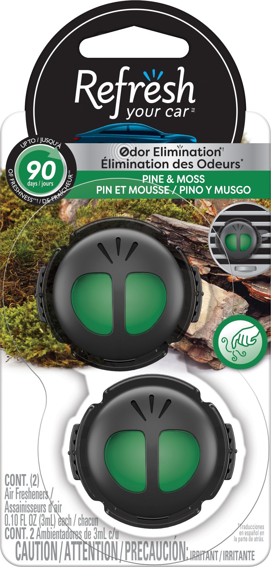 Refresh Your Car Mini Diffuser Car Air Freshener Vent Clip, Pine & Moss Scent, 2 Pack, Odor Eliminator