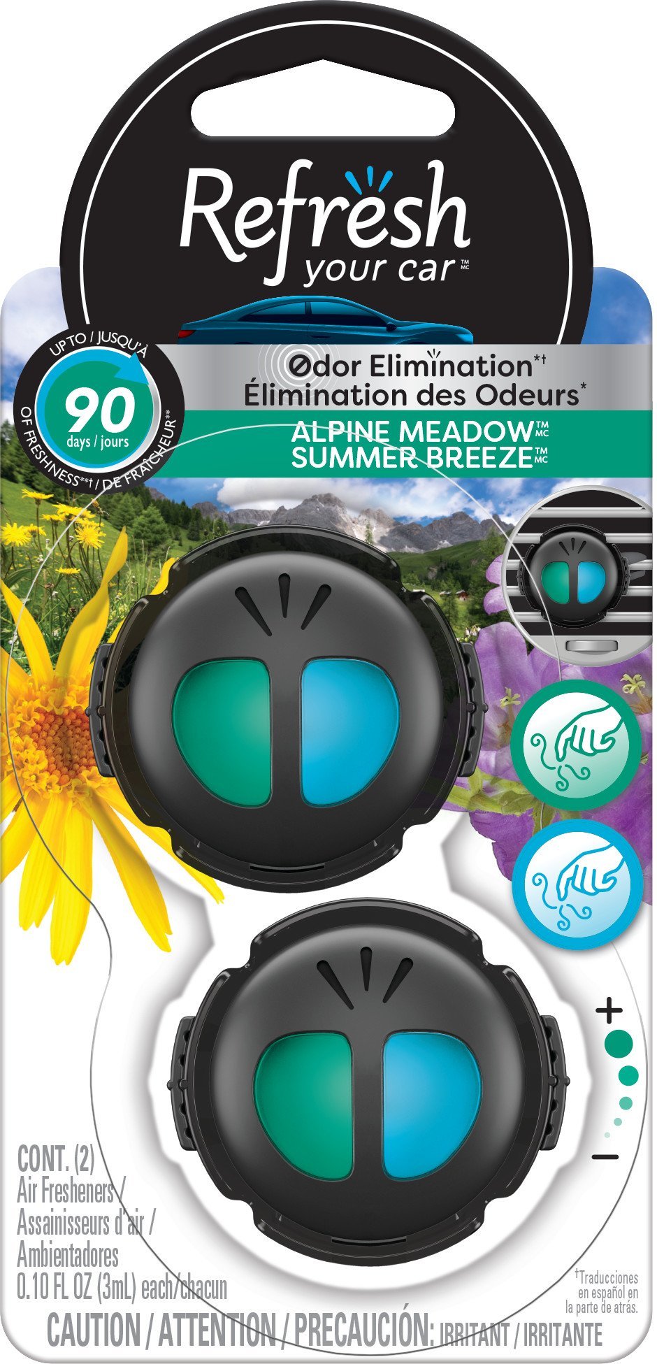 Each 2-pack of car air freshener vent clips provides up to 90 days of freshness**