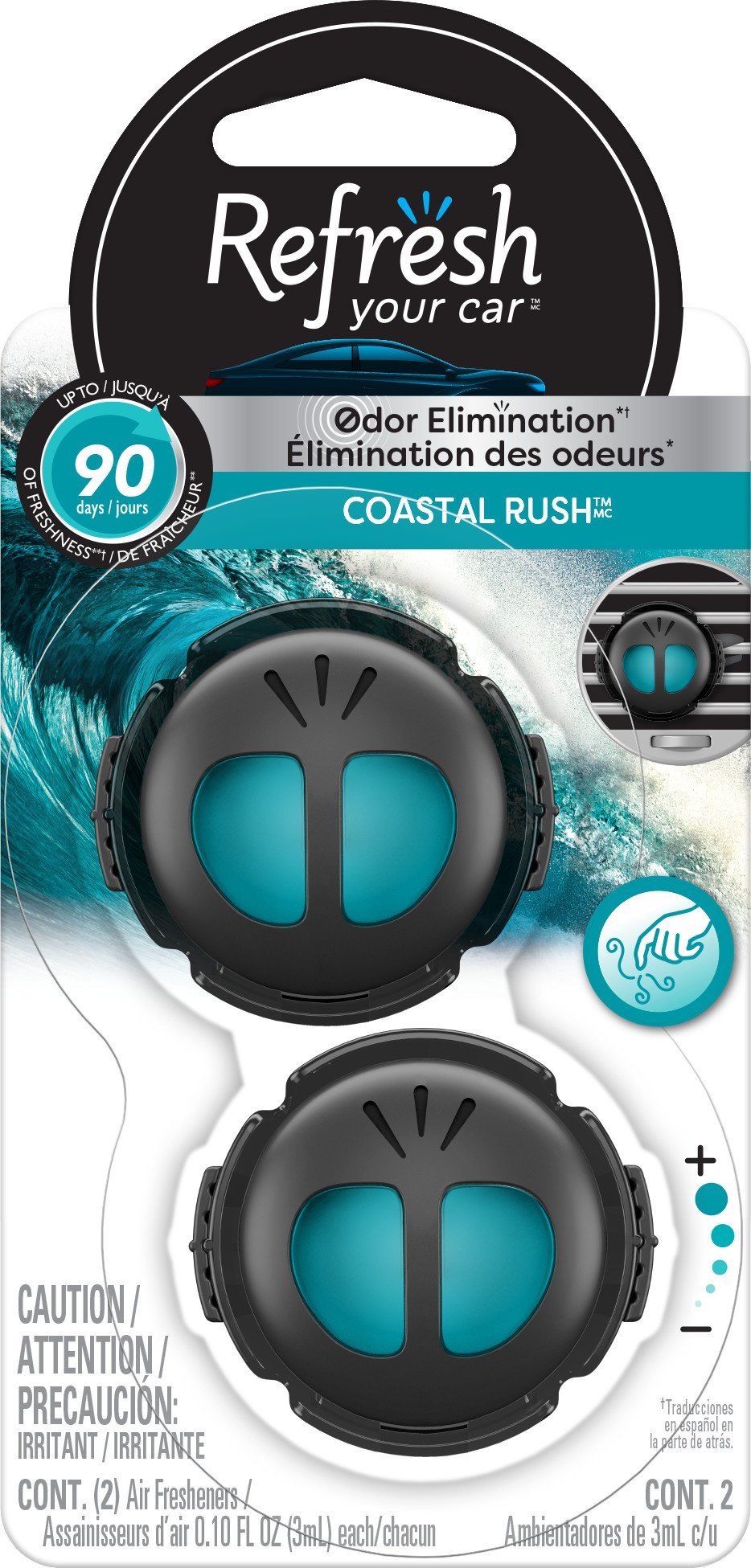 Refresh Your Car Mini Diffuser Car Air Fresheners, Coastal Rush Scent, 2 Pack