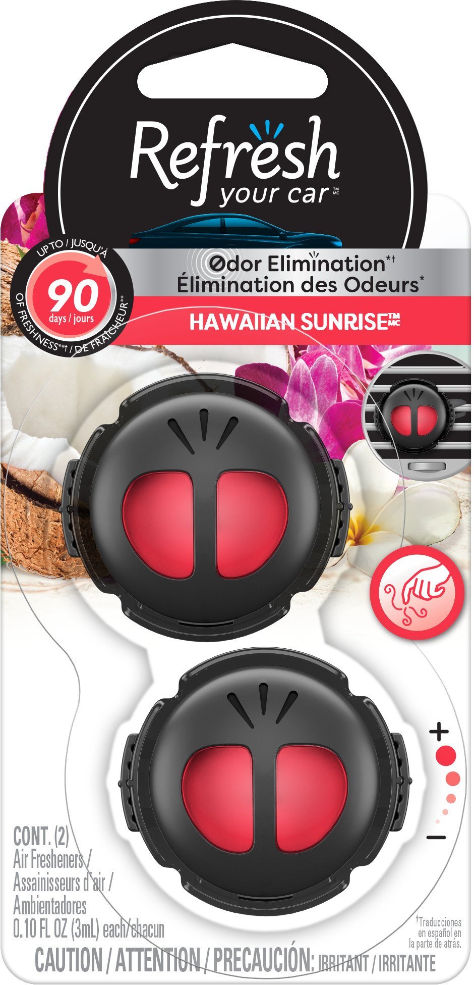 Refresh Your Car Mini Diffuser Car Air Fresheners, Hawaiian Sunrise Scent, 2 Pack