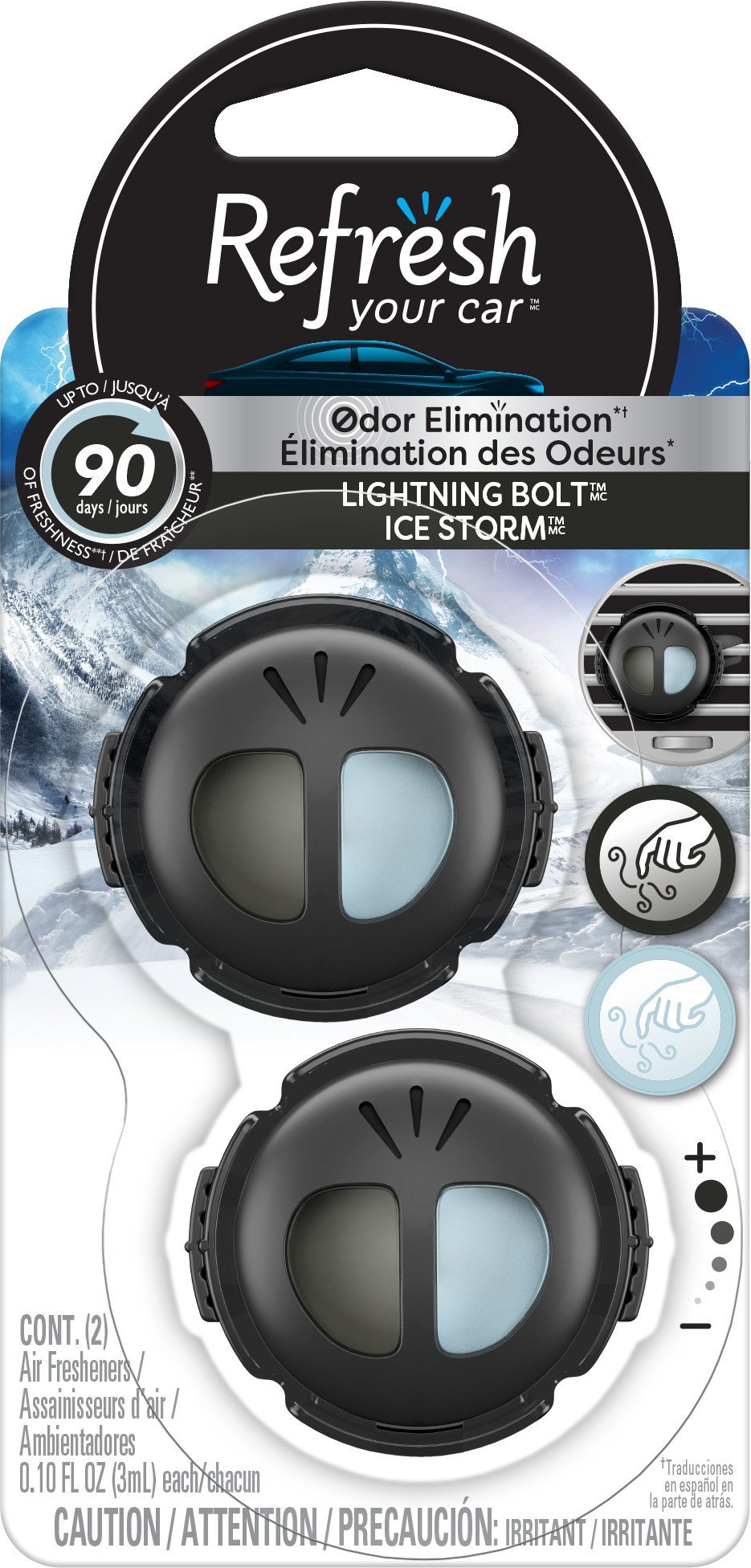 Refresh Your Car Mini Diffuser Car Air Fresheners, Lightning Bolt / Ice Storm Scent, 2 Pack